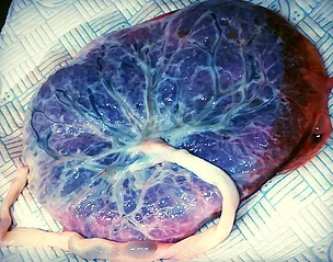 Toto téma je nesmírně složité a pro ty, kteří se nezajímají o vědu či fyziologii, pravděpodobně také velmi nudné. Pokud vás tedy zajímá čistě vědecké vysvětlení, podívejte se prosím na článek od autorů Mercerové a Skovgaarda (2002). Zde předkládám zjednodušenou verzi…Dítě/placenta má samostatný krevní systém oddělený od matky. Placenta vykonává práci plic tím, že vyměňuje plyny (kyslík a oxid uhličitý) skrze intervilozní (meziklkový) prostor mezi krevním systémem matky a dítěte. Před porodem se vždy jedna třetina krve dítěte nachází v placentě, aby pomáhala usnadnit výměnu plynů.