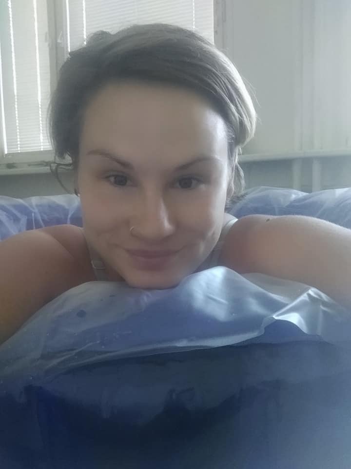 PA mi dala podložku před WC, že tam můžu porodit, ale není to úplně super. Naštěstí jsem se zvedla a šla do bazénku a za cesty říkala: Já ale nechci kakat do bazénku ? PA se smála a odpovídala, že je to v pořádku!! Že všechno, co jde ven, je správně. V bazénku jsem tlačila, voda mi pořád nepraskla a já nejprve vytlačila vak a křičela jsem na PA, ať ho dá okamžitě ze mě pryč! Nakonec ho praskla a pak přišla na řadu hlavička, sahala jsem si na ní, bylo to neuvěřitelný!!!! Podívala jsem se dolu a viděla Krásné dlouhé vlásky, které v té vodě vlály. Byla to nádhera ❤️ na další kontrakci mi pomohla PA s raminkama a pak už se miminko narodilo ❤️❤️